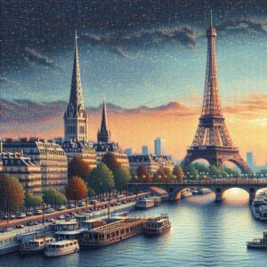 AI 생성 이미지를 응용해볼 수 있습니다. 이번에는 ‘파리의 에펠탑, 점묘화 스타일’로 입력해봅니다. 점묘화는 점으로 그림을 표현하는 회화 방식입니다. 다양한 회화 기법이나 화가를 알고 있다면 프롬프트에 사용해볼 수 있습니다.